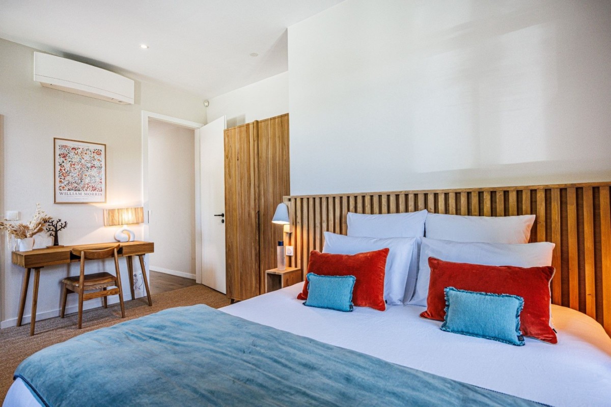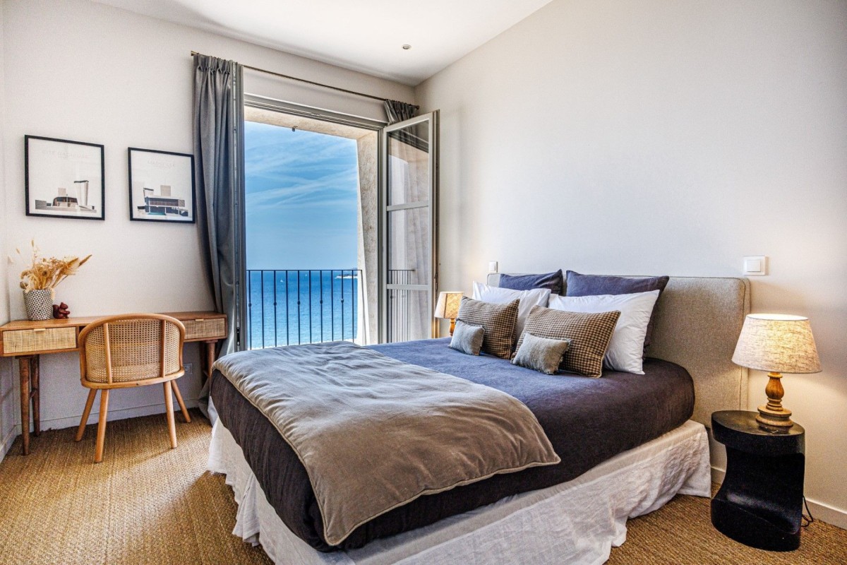 Bedroom 8: First floor bedroom with a queen-size bed (can be made as two single beds), A/C, WiFi, sea view, and en-suite bathroom in corridor  with shower, vanity, and WC. 2 guests maximum.