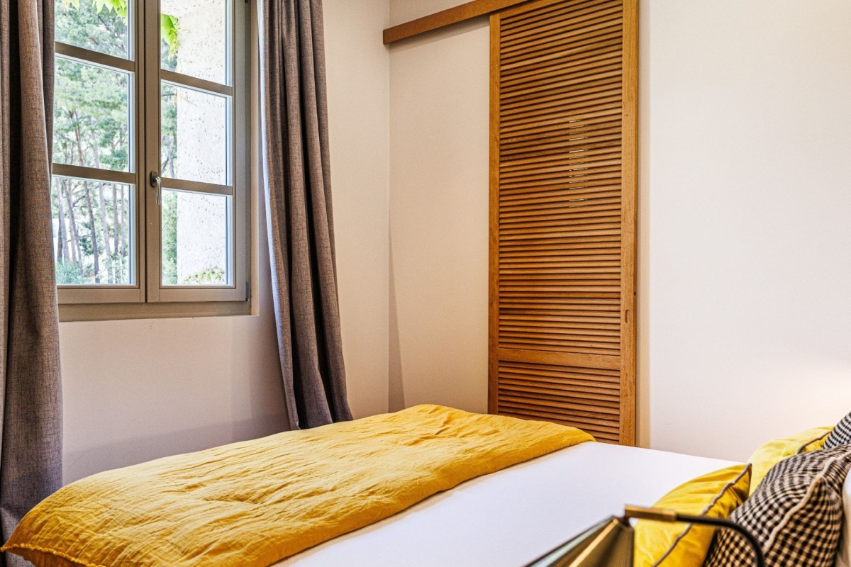 Bedroom 9: Ground floor bedroom with a king-size bed (can be made as two single beds), A/C, WiFi, garden view, and en-suite bathroom  with shower, vanity, and WC. 2 guests maximum.