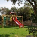 Accommodating up to ten guests, the villa features five lavish en-suite bedrooms, meticulously designed to the highest standards. Its opulent amenities rival those of a five-star resort, including a heated outdoor swimming pool, a state-of-the-art gymnasium, a cinematic indulgence in the form of a dedicated cinema room, and not one, but two soothing hot tubs. Shaded by ancient olive trees, an outdoor activity area beckons with a playground for children, a boules pitch for leisurely matches, and a charming bar.