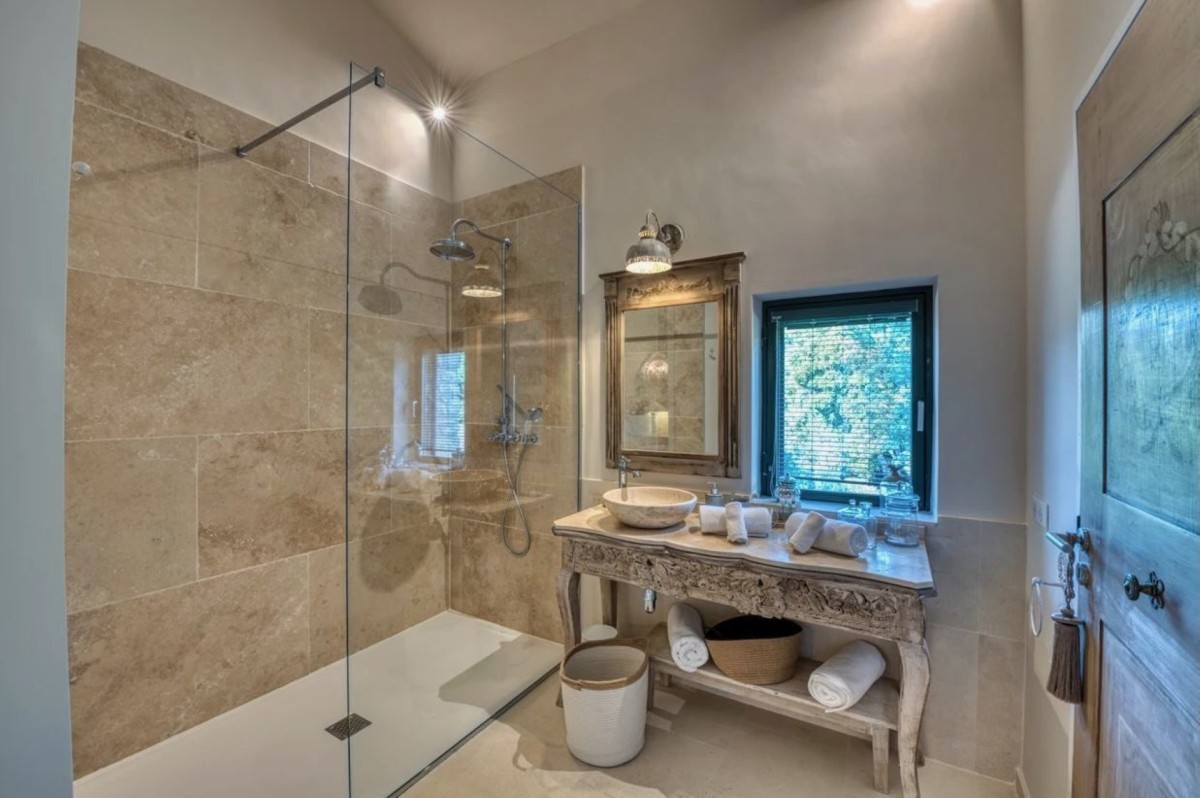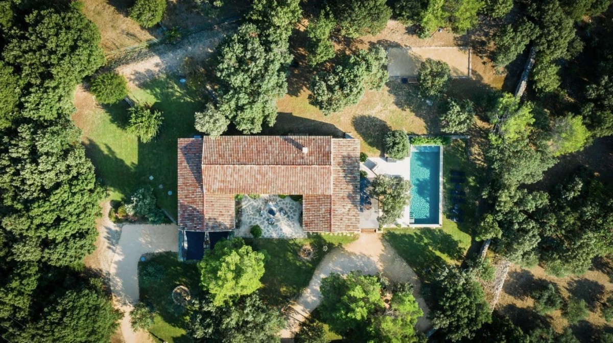 Set within one hectare of oak, pine, and olive trees, the villa is surrounded by unspoiled nature and enclosed by a traditional dry-stone wall, ensuring complete privacy and security.