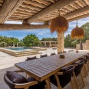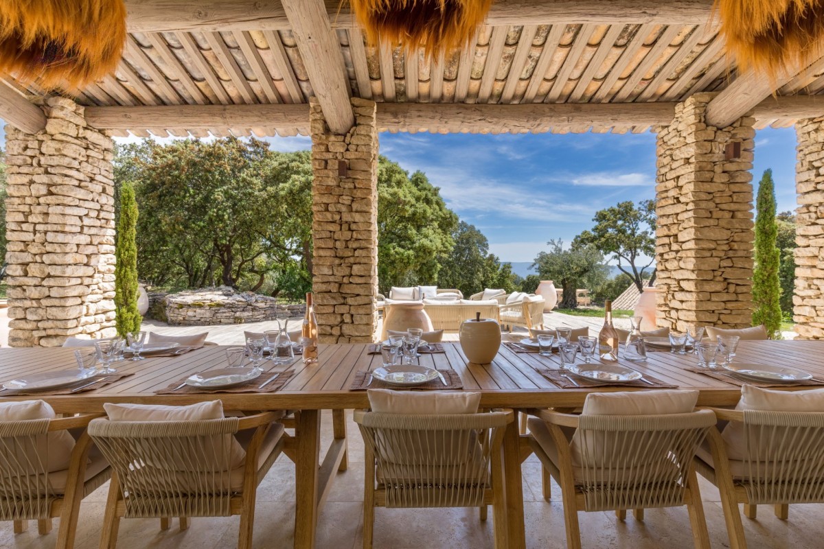 The outdoor areas are as impressive as the interiors. Guests can enjoy a heated swimming pool with a pool house, a multisport court, a pétanque area, and numerous shaded terraces perfect for al fresco dining or peaceful morning breakfasts. A dedicated wellness space completes the experience, featuring a gym, massage table, sauna, and an outdoor yoga area immersed in nature.
