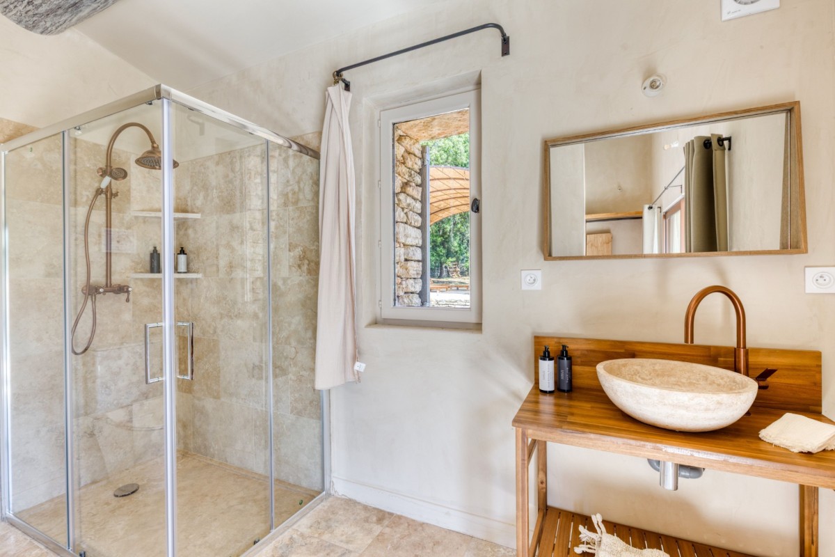 Set in an exceptional natural environment, the property is discreetly tucked away in a private four-hectare pine forest, with the Vaucluse mountains providing a breathtaking backdrop. Only a 15-minute stroll from Gordes, Mas des Gordiens enjoys a rare and privileged location, offering absolute tranquility while remaining close to some of the region’s most celebrated sites.
