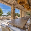 Spanning more than 450 m² and arranged across three independent buildings, this elegant family estate comfortably accommodates up to 18 guests. It features nine air-conditioned bedrooms, each with its own en-suite bathroom and television, ensuring privacy and comfort for all.