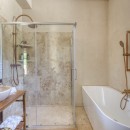 Bedroom 2: Ground floor bedroom with a king-size bed, WiFi, A/C, TV, and en-suite bathroom with bathtub, shower, vanity and WC. 2 guests maximum.