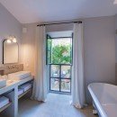 Bedroom 1: First floor bedroom with a king-size bed, ceiling fan, A/C, safe and en-suite bathroom with bathtub, double vanity and WC. 2 guests maximum.