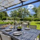 Outside, the villa's expansive grounds showcase manicured gardens, creating a serene backdrop for alfresco dining, leisurely strolls, or simply basking in the Mediterranean sun. Guests can indulge in leisurely afternoons by the private swimming pool, taking refreshing dips while admiring panoramic views of the surrounding countryside.