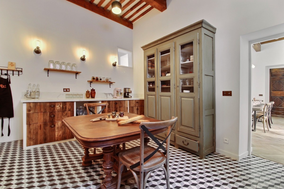On the garden level, two additional bedrooms provide further accommodation, alongside a home cinema for cosy evenings. A second fully equipped kitchen opens directly onto a furnished terrace, creating the perfect space for outdoor dining while taking in the stunning views of the Luberon.