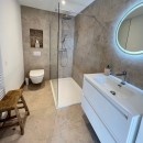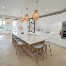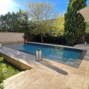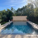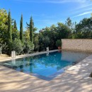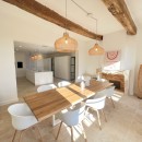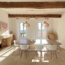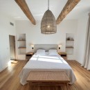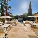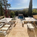 The villa boasts modern amenities and sophisticated decor, featuring full air conditioning in all six bedrooms and an underfloor cooling system on the ground floor. The ground level of the bastide houses a well-appointed kitchen alongside a spacious dining room, as well as a bright and airy living room adorned with authentic materials and soothing natural hues.