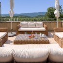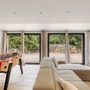 The villa is spacious, featuring seven air-conditioned bedrooms that can accommodate up to fourteen guests. It is well-equipped with five modern bathrooms, a fully functional kitchen, and a bright living room, designed to cater to the needs of family or group gatherings. For entertainment, a cozy TV lounge with a foosball table is available, providing the perfect setting for lively evenings.