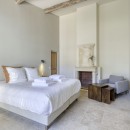 Bedroom 1: Ground floor Master bedroom with a king-size bed (can be made as two single beds), WiFi, A/C, TV, fireplace, private terrace, and en-suite bathroom with bathtub, shower, vanity, and WC. 2 guests maximum