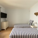 Bedroom 6: First-floor bedroom with queen-size bed, A/C, WiFi, TV, access to terrace, sea view, and en-suite bathroom with shower, vanity and WC. 2 guests maximum