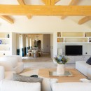 Inside, natural light floods the living and dining areas, creating a bright and inviting ambiance. Expansive windows open seamlessly to the terrace and garden, blurring the lines between indoor and outdoor living. The atmosphere is serene and understated, ideal for relaxation and meaningful gatherings.