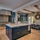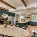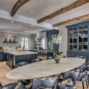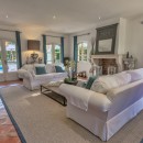 Stepping in from any part of the terrace, guests encounter the beautiful and classically designed interiors. A pale palette in the living room emphasizes that natural light pouring in from the gardens or terrace, and comfortable furnishings invite you to relax and refresh. Casual dining in the kitchen is enhanced by the views just outside the large terrace doors.