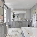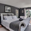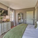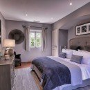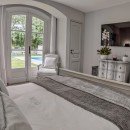 Bedroom 1 (Gray Bedroom): Ground floor bedroom with a queen-size bed, WiFi, A/C, TV, safe, access to garden and swimming pool and en-suite bathroom with shower, vanity and WC. 2 guests maximum.