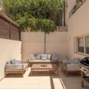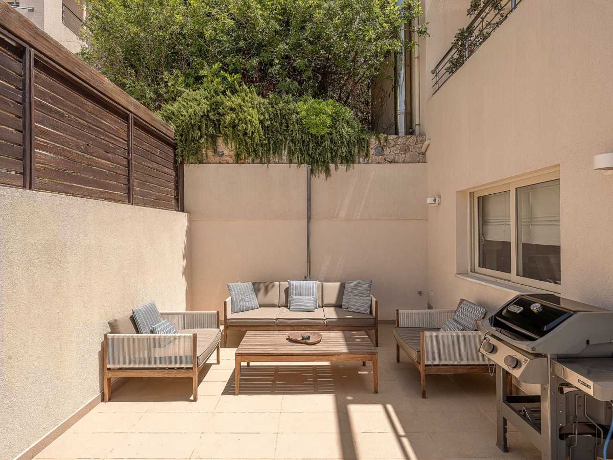 Outside, the villa invites you to relax by the private swimming pool, surrounded by comfortable sun loungers and a stylish lounge area—perfect for soaking in the sun or enjoying a breathtaking sunset. A nearby outdoor dining area, complete with a gas BBQ, sets the stage for memorable al fresco meals with family or friends. Secure parking is available on-site for added convenience.