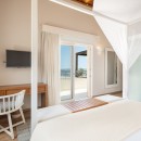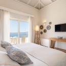 Bedroom 3: Upper floor bedroom with two single beds (can be made up as a king-size bed),  A/C, WiFi, TV, private balcony with sea view, and en-suite bathroom with rain shower, vanity, and WC. 2 guests maximum