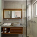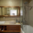 Upstairs, two bedrooms are strategically placed at opposite ends of the villa to ensure maximum privacy, each with its own private terrace. One bedroom features a split king bed that can be arranged to suit your needs, while the other invites romance with a beautiful canopy bed and sun-drenched terrace furnished with loungers. All bedrooms are fitted with top-quality mattresses, a pillow selection service, and large-screen TVs for a premium rest experience.