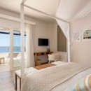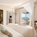 Bedroom 4: Top floor bedroom with a king-size canopy bed,  A/C, WiFi, TV, kitchenette with mini fridge and coffee machine, private balcony with jacuzzi, and en-suite bathroom with bathtub with hydromassage shower, vanity, and WC. 2 guests maximum
