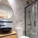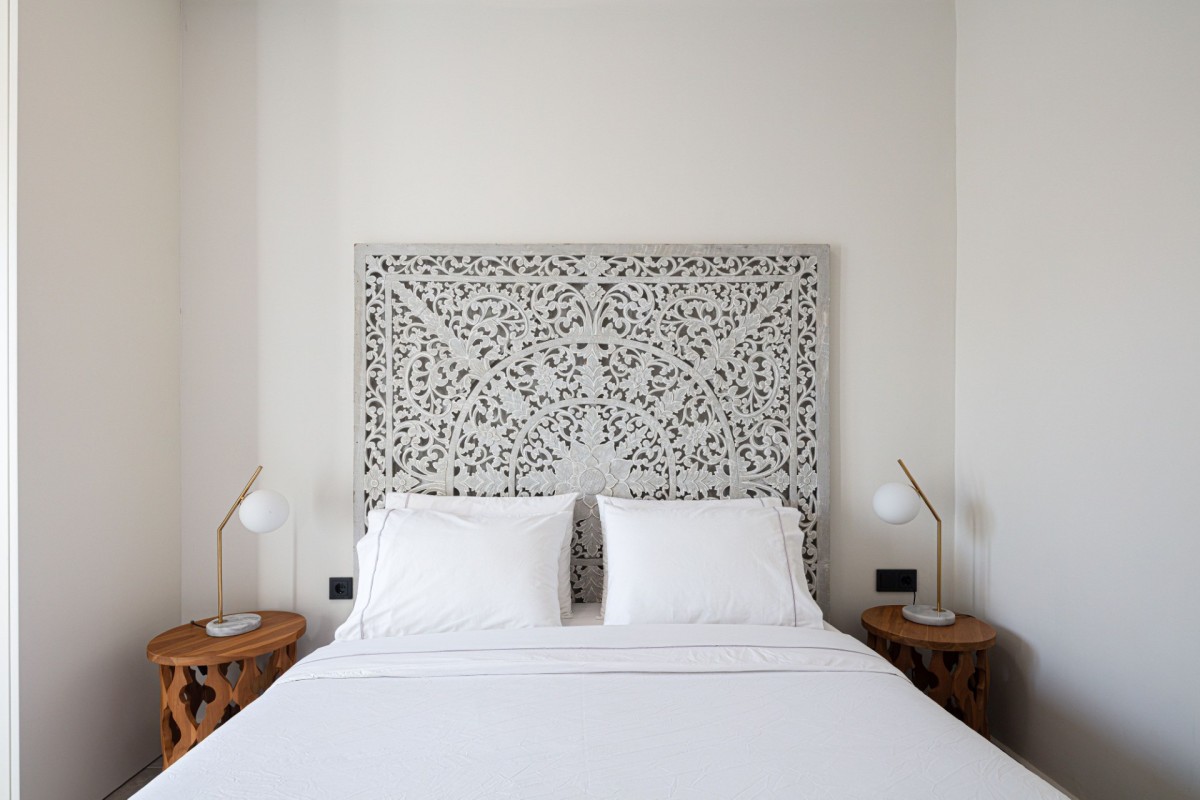Bedroom 3: First floor bedroom with a queen-size bed,  A/C, WiFi, private balcony, and en-suite bathroom with shower, vanity, and WC. 2 guests maximum