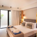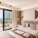 Bedroom 5: Ground floor bedroom with a king-size bed, A/C, WiFi, sea view, access to outdoor area, and shared bathroom with shower, vanity and WC. 2 guests maximum.
