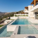 During your summer vacation, what could be better than lounging by the pool and soaking up the sun? The villa's private garden lawn is perfect for enjoying sunset drinks, while the swimming pool and its accompanying lounge area with sofas create an ideal spot for relaxation. Adjacent to the pool, a dining table for 16 guests awaits, providing moments of relaxation for you and your family. Fire up the grill and come together for an alfresco meal under the pergola, as the stars begin to twinkle in the night sky. The villa also offers sunbeds for basking in the Cretan sun and a range of little details that are sure to impress. Cool and contemporary, Casa di Franco showcases stylishly designed interiors and beautifully appointed outdoor spaces.