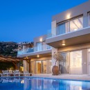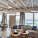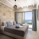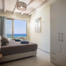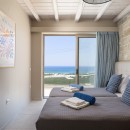 As you step inside Villa Elpida, you'll be greeted by a stylish interior that perfectly complements the surrounding beauty. The main living room, minimal yet incredibly comfortable, features large windows that frame the outstanding views of the natural landscape and the Mediterranean Sea. The kitchen is equipped with modern appliances, ensuring convenience during your stay. The villa offers five spacious bedrooms, each with its own ensuite bathroom, providing serenity and privacy for all guests. On the ground floor, you'll find one bedroom with a double-size bed and an ensuite bathroom with a shower. The remaining bedrooms are located on the first floor, two with double-size beds and two with twin-size beds, each with ensuite bathrooms and a balcony overlooking the sea.