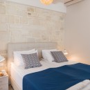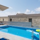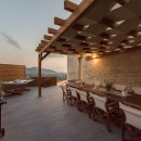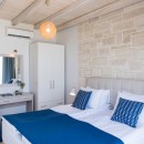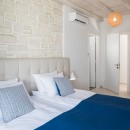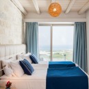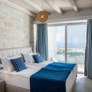 Villa Galateia, spanning two floors, embodies perfection and comfort. The interior is adorned with modern stone, creating an elegant and cozy atmosphere. As you enter the villa on the ground floor, an open-plan space greets you, featuring a fully equipped kitchen, a living room with a fireplace, and a dining area. Large windows bathe the space in sunlight. The ground floor also houses a bedroom and two bathrooms, one of which is ensuite. Just a few steps above, you'll find four bedrooms, each with private balconies. Every bedroom boasts an ensuite bathroom. On the ground floor, there is one bedroom with a double-size bed and an ensuite bathroom with a shower. The remaining bedrooms are located on the first floor, two with double-size beds and two with twin-size beds. Each of these bedrooms offers an ensuite bathroom and a balcony with a sea view.
