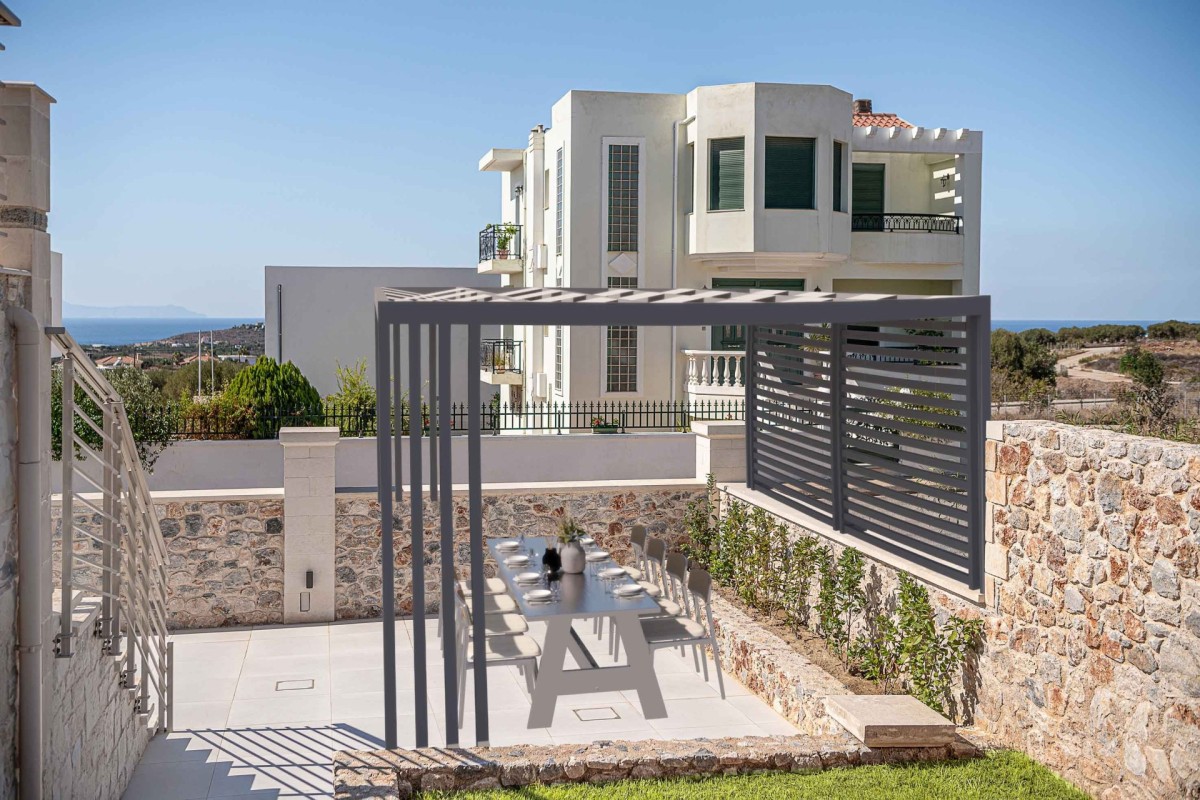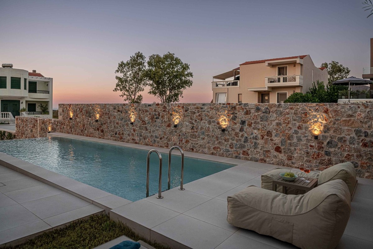 Luminus Arcus Villa is a private, luxurious, and fully autonomous residence set in a prime location near the golden beaches of Stavros, Tersanas, and Kalathas. Nestled in the scenic area of Horafakia, Akrotiri, this newly built three-level villa offers the perfect blend of elegance, comfort, and modern design, making it an ideal retreat for families or groups of up to 10 guests.