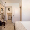Bedroom 5: Second floor Master bedroom with a queen-size bed,  A/C, WiFi, lounge area with TV and workspace, access to balcony with mountain and sea view, and access to terrace, and en-suite bathroom with bathtub, vanity, and WC. 2 guests maximum