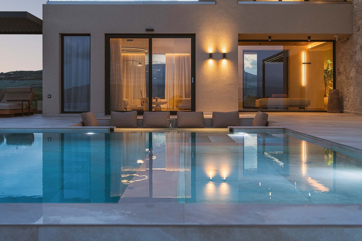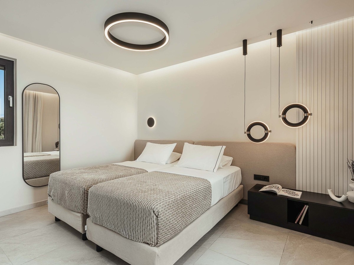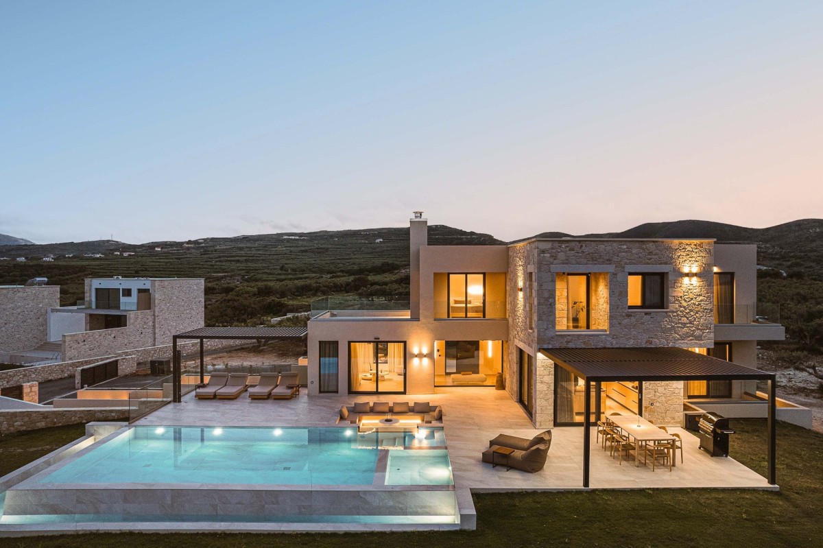 Rastoni Villa is a brand-new, luxurious two-story property with four bedrooms and four and a half bathrooms, located in the peaceful area of Kalyviani. Just a short drive from the world-famous Balos Lagoon and Falasarna beach—renowned for their crystal-clear blue waters—it offers the perfect base for exploring some of Crete’s most iconic summer destinations. With the sea only 2.5 km away, guests can enjoy the sun and surf with ease, while the villa itself promises an upscale holiday experience tailored to the needs of even the most discerning travelers.