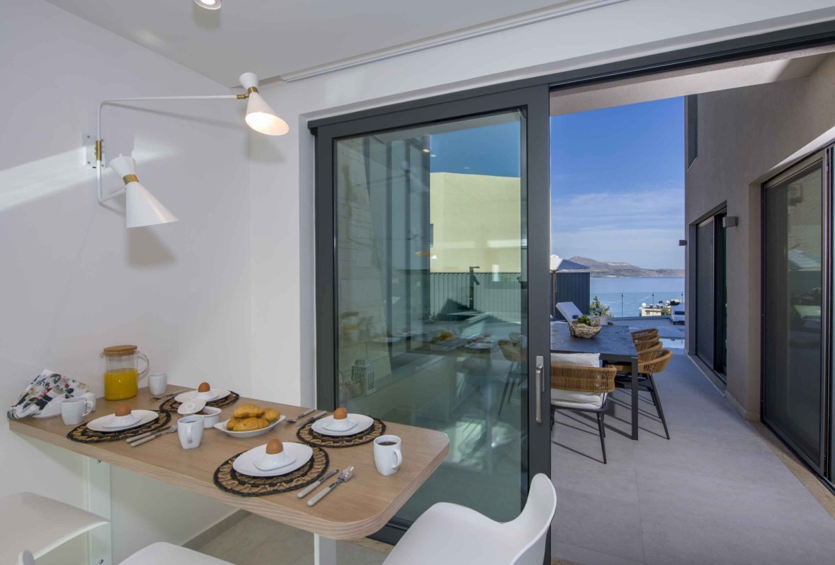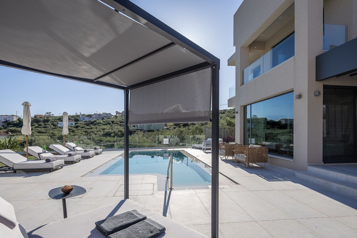 Royal Bird Villa is a private, luxurious, and autonomous retreat nestled in a prime location in Kalives, just a short distance from sandy beaches. Perched on a hilltop with breathtaking sea views, this beautiful three-storey villa combines privacy, comfort, and elegance to create an ideal setting for a memorable vacation.
