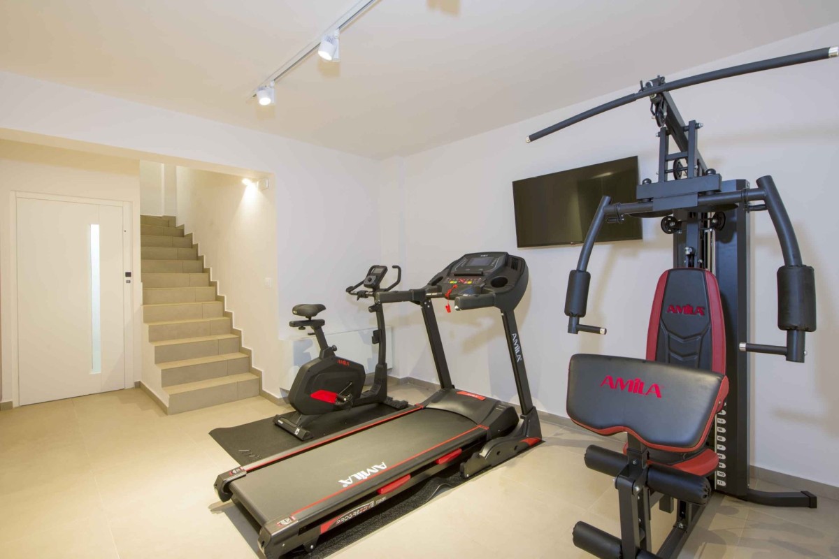 On the lower level of the villa, guests will find a private gym, perfect for maintaining a workout routine, as well as a sauna room and an additional shower for relaxation and wellness.