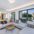 The outdoor area of the villa is equally impressive. A saltwater swimming pool, surrounded by sun loungers and a double daybed, invites guests to unwind and soak up the sun. The lounge space offers the perfect setting to enjoy a cocktail while watching the sunset. Adjacent to the pool is a dining area and a fully equipped BBQ space, ideal for alfresco dinners under the stars. The lush garden surrounding the villa adds to the serene ambiance, creating a sense of paradise. For convenience, the villa also provides secure parking for two cars and a free EV charging station.