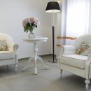 The first floor of the suite features a delightful bedroom with 2 single beds, a bathroom with a shower, a cozy living room, a dining table, a fully equipped kitchen, a convenient mini bar, and a furnished balcony that provides panoramic views of the mesmerizing sea. It's the perfect spot to start your day with a cup of coffee or unwind with a glass of wine while immersing yourself in the captivating surroundings.