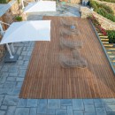Indoors, Villa Olivia is divided into a main building and three independent guest rooms, allowing for freedom and independence among guests. The main building features a master bedroom and two additional en-suite bedrooms. The highlight is the master bedroom, spread across two levels and offering unparalleled luxury. Each room is equipped with modern amenities, including air conditioning, Wi-Fi, a safe box, a hairdryer, and a smart TV. Expansive outdoor areas with comfortable sofas and tables provide the perfect spot to unwind and soak in the surroundings. The main building also houses the kitchen and living area, providing a space for shared meals and intimate moments.