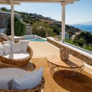 Experience the epitome of luxury at Carmina, a stunning villa located in the most coveted area of the island, just minutes away from Psarou Beach and Mykonos Town. This architectural gem offers a breathtaking bird's-eye view of the sea, extending all the way to the islands of Paros and Naxos. Whether you choose to unwind on the serene terrace with your loved ones or explore the vibrant surroundings, Carmina's prime location ensures easy access to a variety of activities, from lively bar crawls and indulgent shopping sprees to blissful sun-soaked moments on the beach.