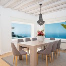 Carmina's modern interiors rival those found within the pages of a prestigious interior design magazine. The main villa boasts five double bedrooms, including a master suite, each with its own en-suite bathroom. Additionally, there are three independent guest suites located throughout the upper and lower levels, providing accommodation for up to 15 guests. Every window frames panoramic views that showcase a kaleidoscope of blues, infusing the living and dining areas with abundant natural light and creating a cozy and welcoming atmosphere. The villa's wooden ceilings, marbled floors, contemporary artwork, and elegant white furnishings culminate in a sophisticated blend of understated luxury and timeless beauty.
