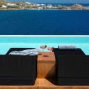The villa's standout feature is its gleaming infinity pool, which effortlessly blends into the sea, offering a view that’s practically begging to be shared on Instagram. Imagine waking up to the sound of rolling waves, diving into the refreshing pool with an unbeatable view, while a private chef prepares breakfast, served on the outdoor dining area that accommodates up to 14 guests. Spend your day basking in the generous Greek sun on in-water loungers, and after a night out at Nammos or Scorpios, return for a pre-night-out nap or a last swim before heading back inside to get ready for a night of dancing at Mykonos' cosmopolitan bars.