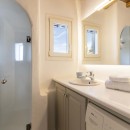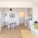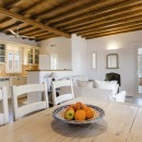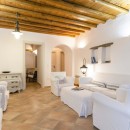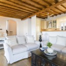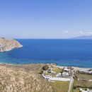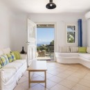 A few steps away, you will find the entrance to the first guest house. Here, another kitchen, dining area, living room, and two additional bedrooms, each with its bathroom, are situated. The living room and the bedroom with the double bed are equipped with air conditioning. On the opposite side of the villa, you will discover the second guest house, which is also completely independent. It features a living room, dining area, kitchen, and a bedroom with a double bed and an en suite bathroom. The main air conditioning unit in this guest house sufficiently caters to the entire house. Regardless of the level you choose, the view of the Aegean Sea will leave you in awe.