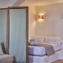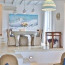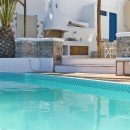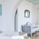 The villa's strategic location places it only 3.5 kilometers from Mykonos Town, granting guests easy access to the vibrant atmosphere of the town. Ornos Beach and Saint John Beach are both within a kilometer's reach, offering convenient options for beach enthusiasts. Mykonos Airport is a short 5-kilometer distance, while the port is 7 kilometers away. Villa Athena provides a secluded haven away from the bustling town while keeping everything within close proximity. The entire property is equipped with Wi-Fi access, and two parking spaces are available for your convenience.