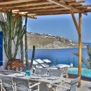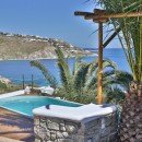 Nestled in Aleomandra, a short distance from Mykonos town, Villa Athena awaits you. This stunning maisonette showcases the iconic Mykonian-style architecture and offers breathtaking views of the coastline and azure sea. With four bedrooms, it's an ideal retreat for families or groups of up to eight seeking an unforgettable holiday experience in Mykonos. Surrounded by a lush green garden, ample outdoor seating, and a delightful spa pool, this villa provides the perfect blend of comfort and relaxation.