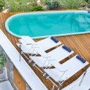 Spanning 213 square meters, Villa Athena sits on a spacious 900-square-meter plot. The two-level villa features three bedrooms in the main house, complemented by an additional bedroom in the independent 40-square-meter guesthouse situated below. The well-equipped kitchen boasts modern appliances, ensuring convenient meal preparation. The living room offers a cozy ambiance with comfortable sofas, armchairs, and a television. Step out onto the balcony from the living room and immerse yourself in the mesmerizing views of the sea and lush garden surroundings. To enhance your stay, the villa offers a newly installed spa pool for your enjoyment.