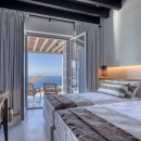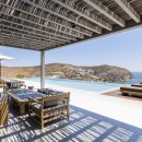 Tucked away in a serene and private location in Elia, Ariadne sits on a vast 4,100 m² property, just 250 m from the beach. Its elevated position offers a breathtaking 180-degree view that invites visitors to bask in the comforts of the villa while soaking in the endless expanse of the azure sea, with the islands of Paros and Naxos creating a stunning backdrop.