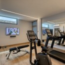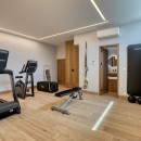 Stay active and energized in the modern gym, equipped with state-of-the-art Matrix fitness instruments, ensuring you maintain your workout routine during your stay. As the sun shines upon you, luxuriate in sunbathing and relish the unmatched view from the outdoor living room by the pool. Witness the mesmerizing spectacle of the sun descending into the sea while enjoying your favorite beverages around the welcoming open fireplace.