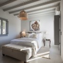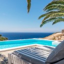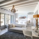 One of the most opulent and secluded villa rentals in Mykonos, Greece, this elegant villa is spread across two levels, with a split-level layout that exudes an airy and light ambiance. The large windows and glazed double doors lead to interconnected covered and uncovered terraces, providing a combination of privacy and accessibility. The calming hues of the walls and floors, along with the pastel contemporary furnishings, create a delightful palette of Mediterranean colors.