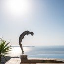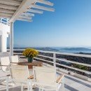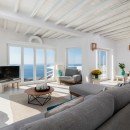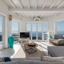 On the first floor, you will discover seven elegantly decorated en-suite double bedrooms, each with private balconies offering stunning views of the sun-kissed Aegean Sea. The second level features a spacious living room adorned with natural materials and unique objects sourced from around the world. It also boasts a small indoor bar and a charming dining area, all sharing panoramic vistas of the sea and pool through the expansive floor-to-ceiling windows. The fully equipped kitchen is conveniently located on the pool level.