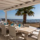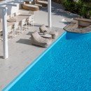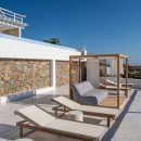 The architectural design harmoniously blends natural stone, whitewashed walls, and wooden ceilings, showcasing the timeless beauty of Cycladic style throughout the property. The highlight of the villa is undoubtedly the pool area, where excitement awaits. Dive into the 90 m2 infinity heated pool and swim up to the bar, or bask in the sun on the comfortable sunbeds and sofas. Find respite in the shaded sitting and dining areas, or unwind at the cozy bar surrounded by built-in stone benches and loungers.