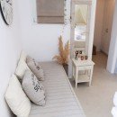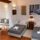 Bedroom 5: Bedroom with a double bed, sofa, ceiling fan, WiFi, A/C, TV, direct access to the garden and en-suite bathroom with shower, vanity and wc. 2 guests maximum.
