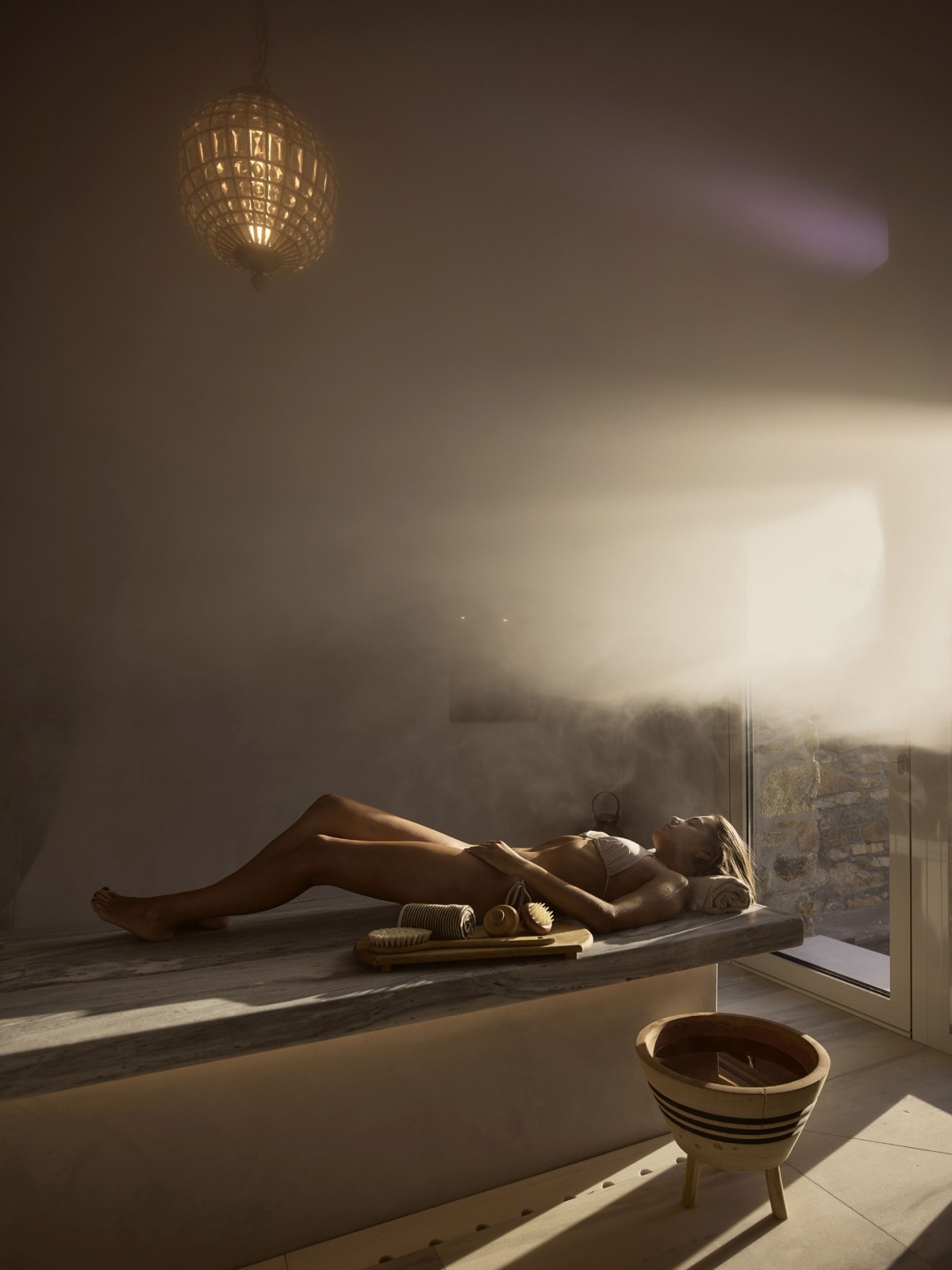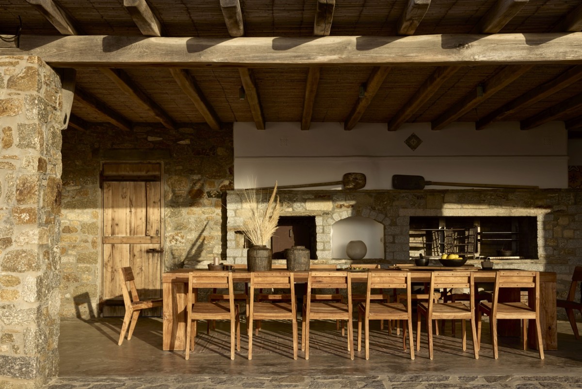 The outdoor dining area, positioned above the pool, offers an awe-inspiring view of the Aegean sky and sea, creating a captivating atmosphere for meals. Each of the six suites at Villa Amra features spacious balconies or verandas, thoughtfully designed to capture the romantic sunset. The suites boast a rustic yet elegant aesthetic, equipped with in-room bars, electronic safe boxes, bathrobes and slippers, luxury amenities, air conditioning, hairdryers, and satellite LCD TVs in suites 3, 4, 5, and 6. Additionally, an iPod Dock Station is available for guests' entertainment.