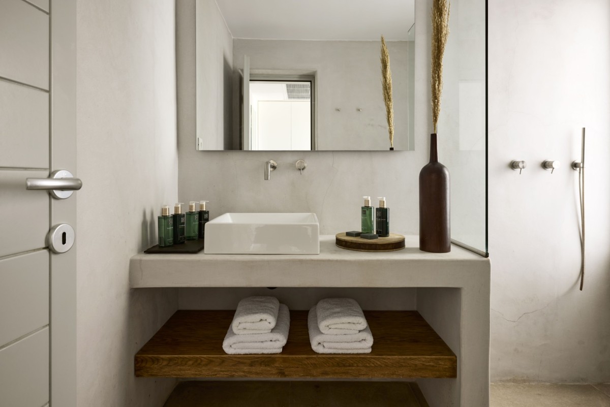 Bedroom 5: Bedroom with a double bed, A/C, TV, mini bar, private terrace with sea view, and en-suite bathroom with shower, outdoor jacuzzi, vanity, and WC. Independent entrance. 2 guests maximum